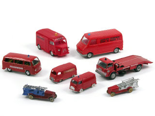 DIVERS Ensemble de 8 véhicules de pompiers rouge