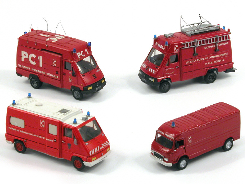 DIVERS Ensemble de 4 fourgons de pompiers rouge