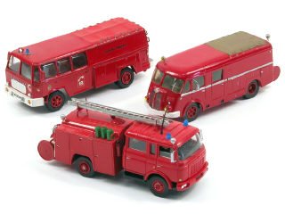 DIVERS Ensemble de 3 BERLIET de pompiers rouge