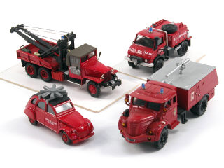 DIVERS Ensemble de 4 véhicules de pompiers rouge
