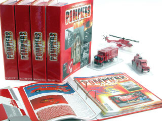 miniatures reproduisant notamment les modèles : RENAULT, GMC, MACK, DODGE, BERLIET, LAND ROVER, MERCEDES, KAISER-JEEP, PEUGEOT, SIDES, RANGE ROVER, CITROËN, HOTCHKISS, SAVIEM - on y joint 5 classeurs de la collection HACHETTE sur le thème des pompiers - quelques modèles de la marque VEREM & certains sans boîte