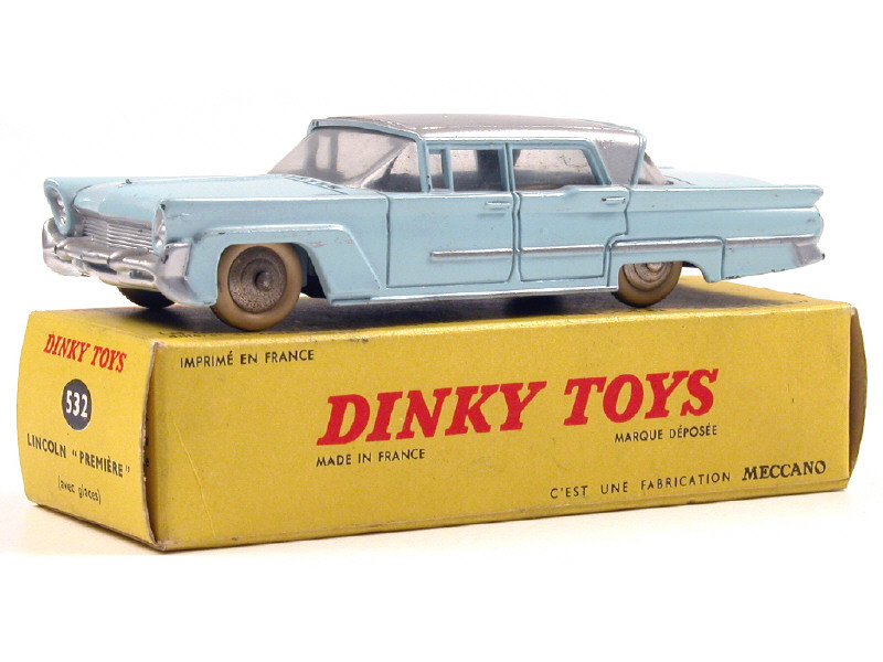 DINKY TOYS (FRANCE) 532 LINCOLN PREMIERE (version avec jantes convexes) bleu ciel, toit gris métal