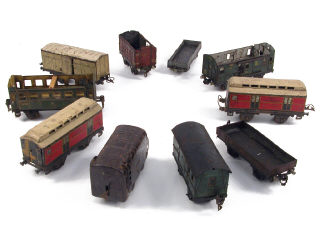 états de 'E' à 'F' - comprend : une voiture de voyageurs, 6 wagons-fourgons, 2 wagons à ridelles basses & un tender - on y retrouve les marques : MÄRKLIN, L.R., JEP & HORNBY