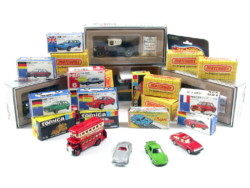 miniatures reproduisant les modèles : PORSCHE,TOYOTA, LOTUS, RENAULT, AUDI, SAUBER, MERCEDES, WILLYS, CHEVROLET, NISSAN, FERRARI, VOLKSWAGEN, MAZDA, BENTLEY & BMW - on y retrouve notamment les marques : MATCHBOX, TOMICA DANDY, HOT WHEELS, MAXWELL, DAYS GONE & CORGI TOYS - une voiture dans une boîte non conforme & une autre sous blister jamais ouvert - un véhicule sans boîte - miniatures de petites échelles à l'exception des CORGI TOYS