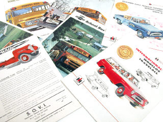 comprend des véhicules utilitaires des marques : CHEVROLET, FORD, WHITE & INTERNATIONAL HARVESTER - 4 documentations sur les bus scolaires d'Amérique du Nord
