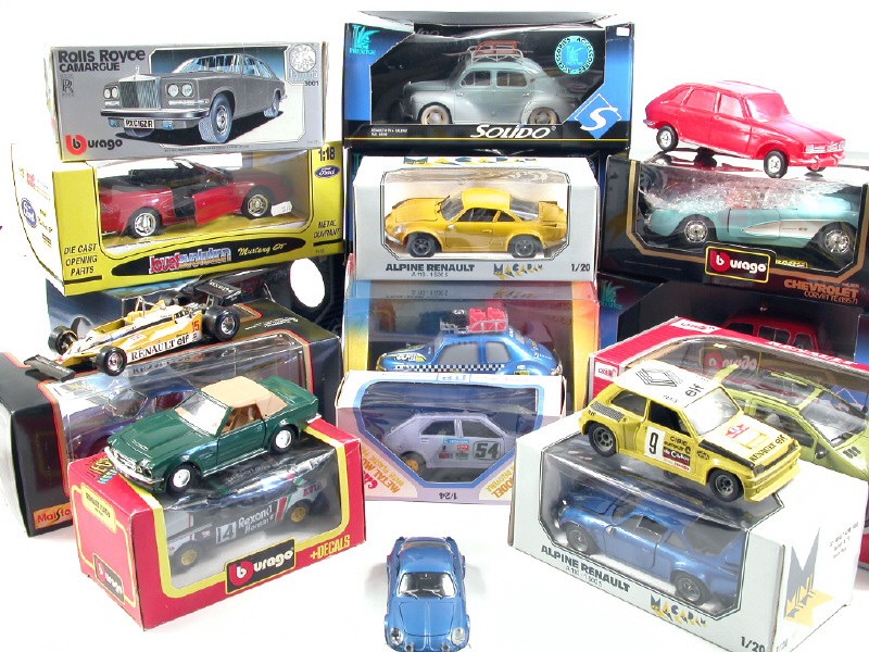 échelles 1/18ème à 1/25ème - miniatures reproduisant les modèles : RENAULT, ROLLS ROYCE, FORD, JAGUAR, ALPINE, ASTON MARTIN & CHEVROLET - on y retrouve notamment les marques : BBURAGO, SOLIDO, POLISTIL, SABAC, MACADAM, MIRA, ANSON, MAISTO & JOUEF EVOLUTION - 5 modèles sans boîte
