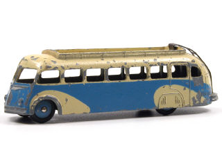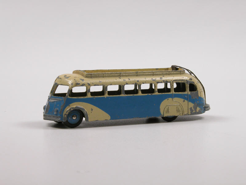 DINKY TOYS (FRANCE) 29E Autocar ISOBLOC (version avec galerie lisse & ailes au pochoir) bleu & crème