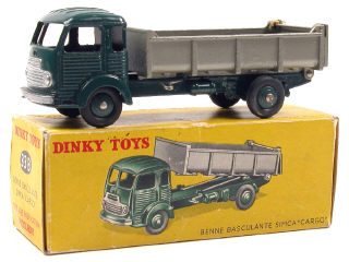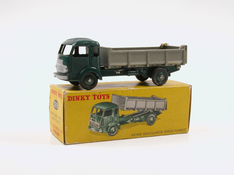 DINKY TOYS (FRANCE) 33B SIMCA CARGO Benne basculante vert foncé, benne gris métal (intérieur strié)