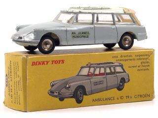 DINKY TOYS (FRANCE) 556 CITROËN ID 19 Break 'AMBULANCE MUNICIPALE' (version avec décalques décalés) gris, toit crème