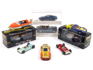 états de 'A' à 'D' - miniatures reproduisant les modèles : HARVEY, RENAULT ALPINE, PORSCHE, LAMBORGHINI, CHRYSLER, BUICK & WILLIAMS RENAULT - on y retrouve les marques : SOLIDO, MATCHBOX & ONYX - 4 modèles avec boîte - pare-brises incomplets sur 2 voitures