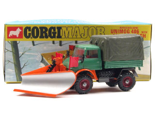 CORGI TOYS (GB) 1150 MERCEDES UNIMOG 406 Chasse-neige vert, orange & gris