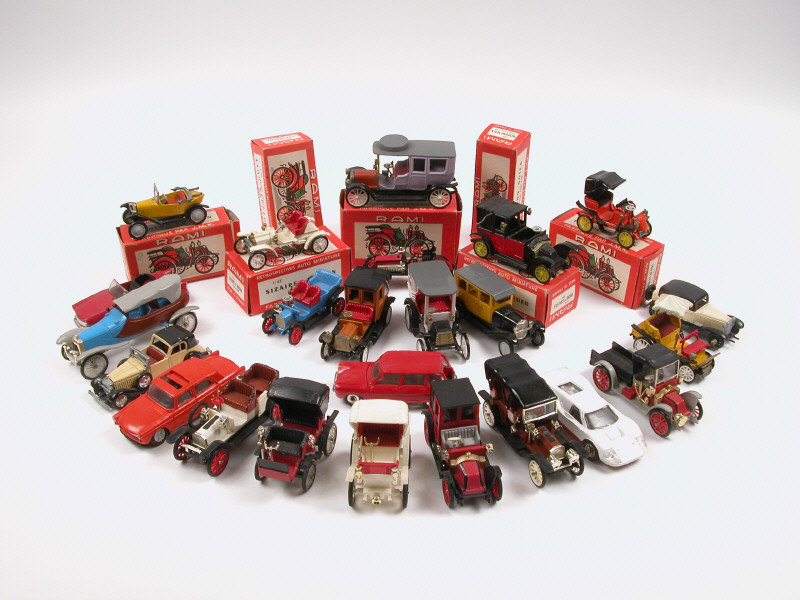 états de 'B' à 'F' - miniatures reproduisant les modèles : PEUGEOT, FORD, CITROËN, HISPANO SUIZA, SIZAIRE & NAUDIN, ALFA ROMEO, SIMCA, PANHARD & LEVASSOR, GOBRON BRILLIE, PACKARD, ROCHET SCHNEIDER, SKIFF LABOURDETTE & RENAULT - on y retrouve notamment les marques : RAMI, NOREV, MINIALUXE & HUILOR - 7 modèles de la marque RAMI avec boîte
