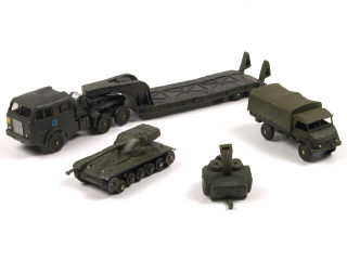 DINKY TOYS (FRANCE) 890 BERLIET Transport de char (version avec jantes concaves & pneus de la remorque 'DUNLOP') kaki