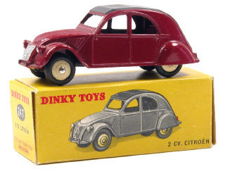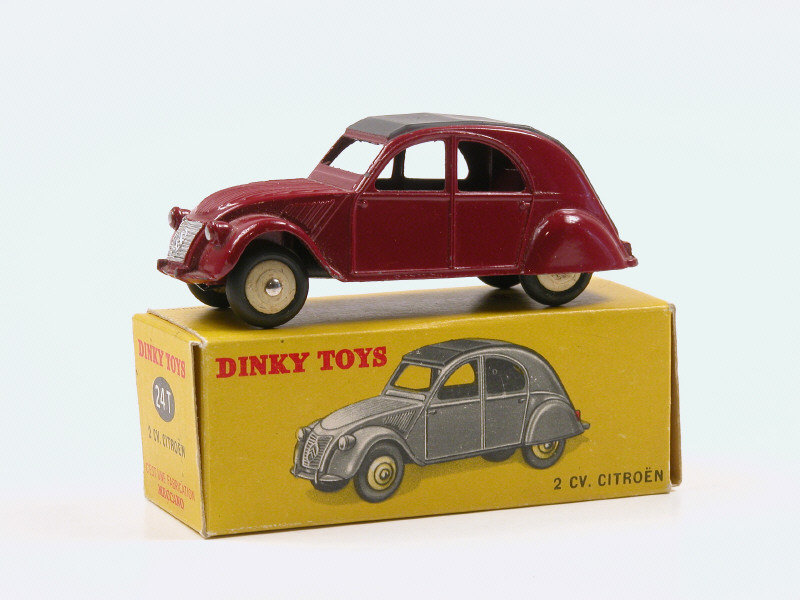 DINKY TOYS (FRANCE) 24T CITROËN 2CV (version avec 3 feux arrière) grenat, jantes crème