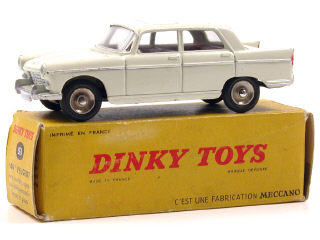 DINKY TOYS (FRANCE) 553 PEUGEOT 404 (premier moule) crème, intérieur grenat foncé