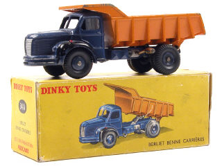 DINKY TOYS (FRANCE) 34A BERLIET Benne carrière MARREL (version avec jantes convexes) bleu foncé & orange