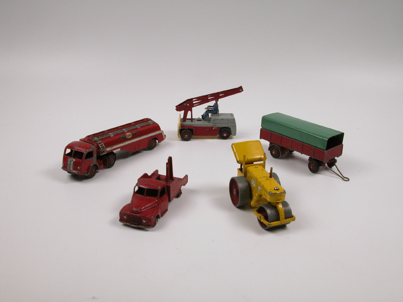 DINKY TOYS (FRANCE) Ensemble de 2 camions, une remorque, un rouleau-compresseur & une grue