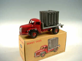 DINKY TOYS (FRANCE) 34B BERLIET Plateau avec container (version avec anneau moulé) rouge, plateau gris foncé