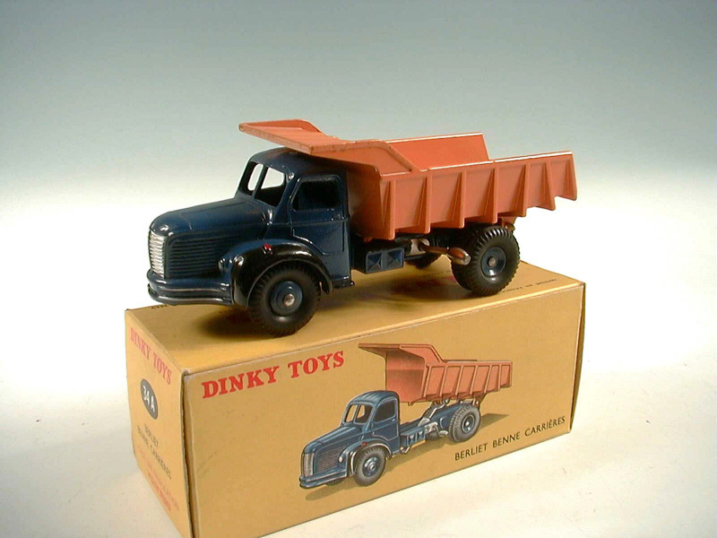 DINKY TOYS (FRANCE) 34A BERLIET Benne carrière MARREL (version avec jantes convexes) bleu foncé & orange