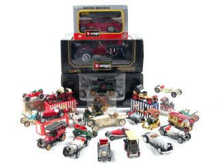 états de 'A' à 'D' - on y retrouve les marques : BBURAGO, GAMA, GUISVAL, ZISS MODELL, KYOSHO, DEL, SAPHIR, ATA, NOREV & RAMI - 9 modèles avec boîte - un véhicule transformé - petits manques - 2 voitures à l'échelle 1/18ème & une autre à l'échelle 1/24ème