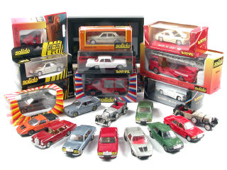 on y retrouve les marques SOLIDO & VEREM - 12 modèles en boîte - une moitié de véhicule mise sous cadre - avec manques
