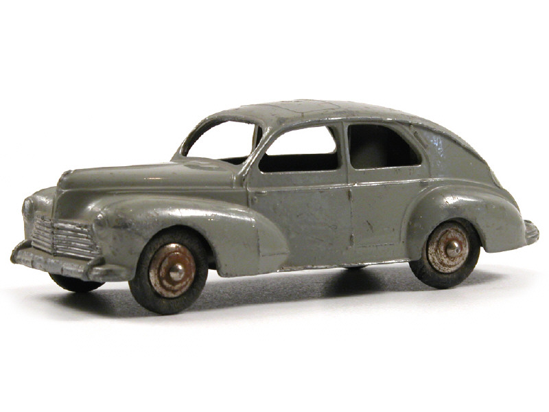 DINKY TOYS (FRANCE) 24R PEUGEOT 203 Petite lunette arrière (version avec intérieur de toit quadrillé & ailes lisses) gris moyen, jantes chromées