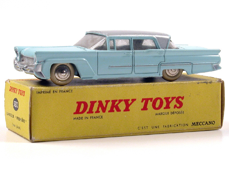DINKY TOYS (FRANCE) 532 LINCOLN PREMIERE (version avec jantes convexes) bleu ciel, toit gris métal