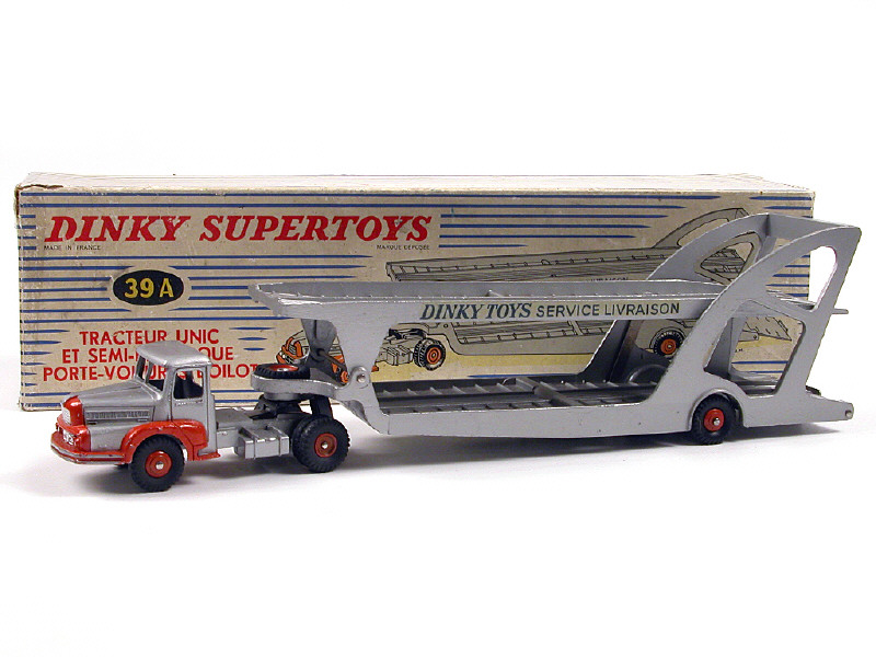 DINKY TOYS (FRANCE) 39A UNIC Porte-voitures 'BOILOT' gris métal & orange
