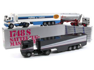 NZG (ALLEMAGNE) MERCEDES 1748 S Semi-remorque frigorifique gris anthracite & gris métal