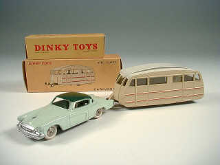 DINKY TOYS (FRANCE) 811 Caravane (version avec toit lisse) crème, filets rouges, toit blanc