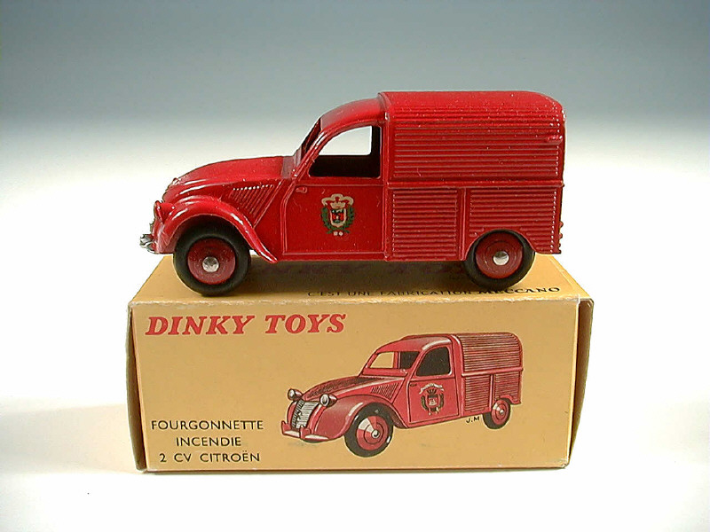 DINKY TOYS (FRANCE) 25D CITROËN 2CV Fourgonnette de pompiers rouge, jantes convexes rouges