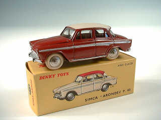DINKY TOYS (FRANCE) 544 SIMCA ARONDE P60 (version avec jantes convexes) brique, toit crème