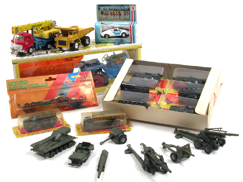 on y retrouve les marques : TRIANG, EKO, SHINSEI, YONEZAWA & POLITOYS - avec manques - 11 modèles en boîte