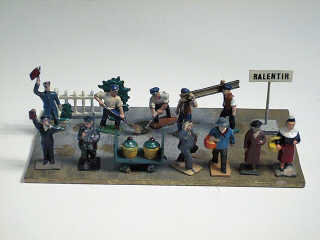 ensemble de 5 personnages, 1 panneau & 1 barrière - certains repeints