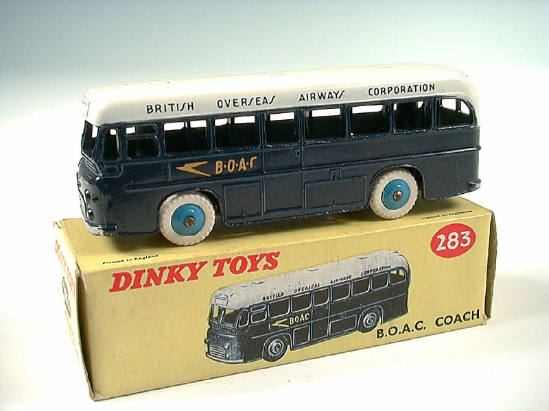 DINKY TOYS (GB) 283 Bus 'B.O.A.C' bleu foncé, toit blanc & jantes bleu vif
