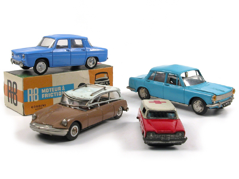 longueur 19.5 cm - moteur à friction (fonctionne) - boîte du modèle GORDINI - manque 2 extrémités de pare-chocs