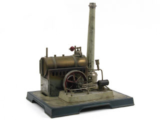 dimensions : 34,5 x 27 x 40 cm - avec réchaud à alcool - une canalisation à refixer - chaudière non testée - quelques traces d'oxydation