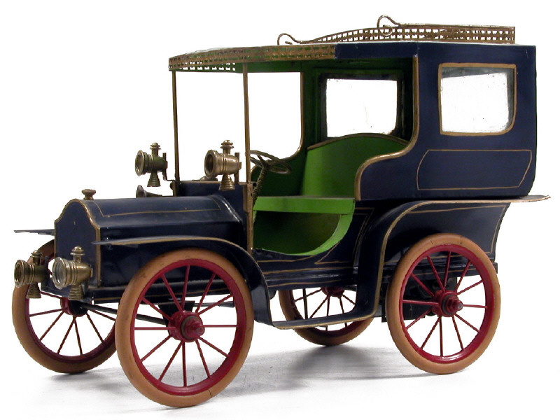 PINARD (FRANCE) Berline de voyage en tôle peinte du début du XXème siècle bleu foncé, rouge & vert