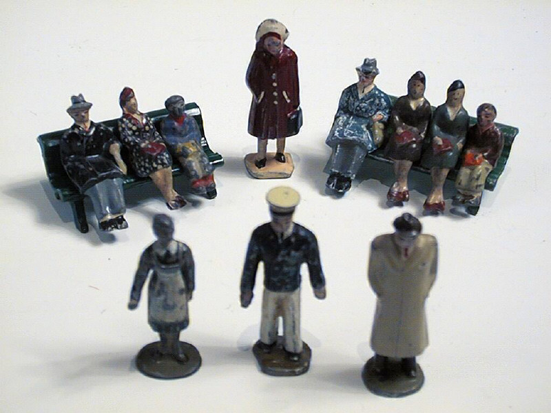 ensemble de 9 personnages & 2 bancs - certains repeints