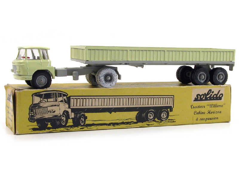 SOLIDO (FRANCE) 302 WILLEME Semi-remorque plateau à ridelles TITAN jaune pâle & gris