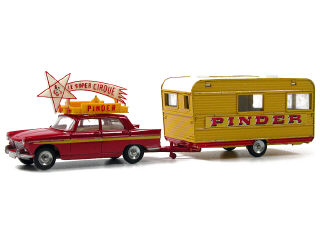 DINKY TOYS (FRANCE) 882 PEUGEOT 404 & Caravane 'PINDER' jaune, rouge & blanc