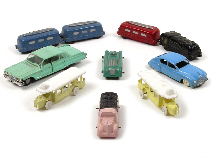 DIVERS Ensemble de 3 voitures, 2 bus, un camion, une locomotive & 3 wagons