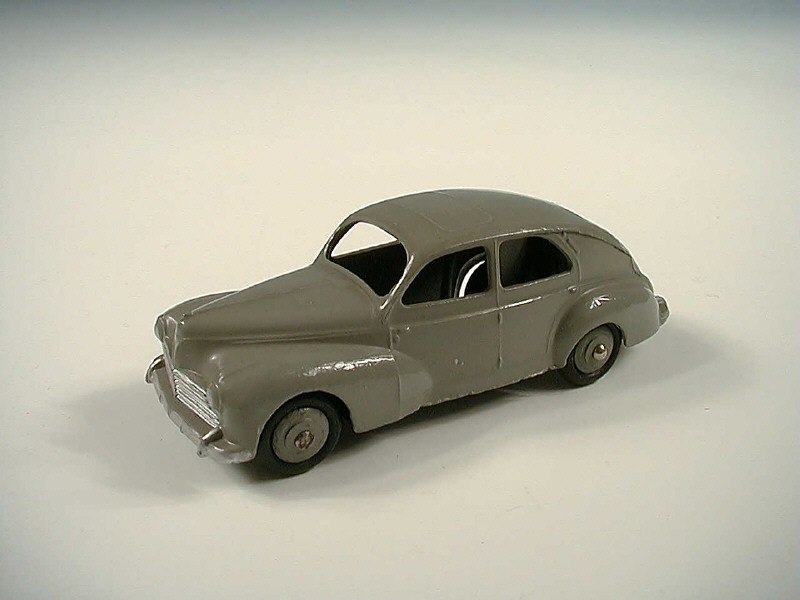 DINKY TOYS (FRANCE) 24R PEUGEOT 203 Petite lunette arrière (version avec intérieur de toit quadrillé & ailes lisses) gris moyen, jantes identiques