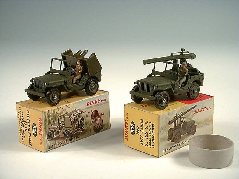 DINKY TOYS (FRANCE) 828 JEEP WILLYS Porte-fusées SS 10 kaki
