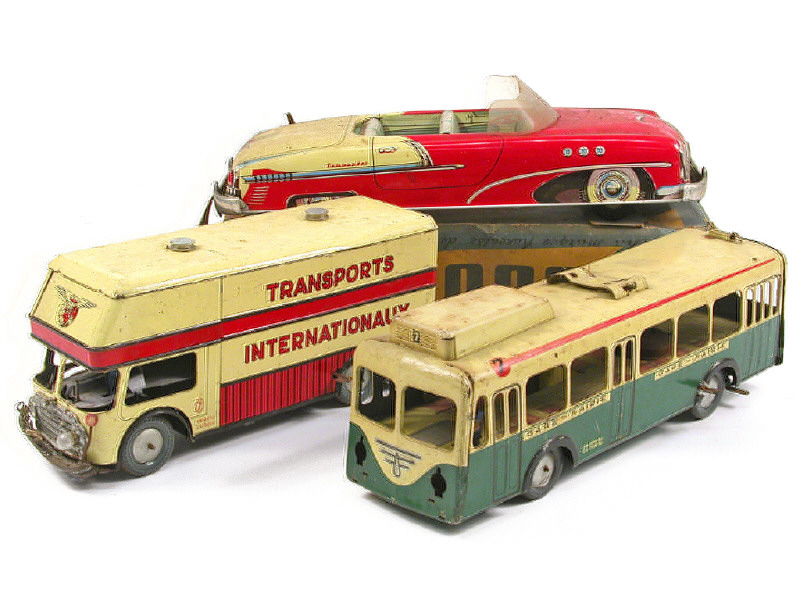 JOUSTRA (FRANCE) Trolleybus en tôle lithographiée vert & crème