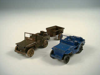 POLICHINELLE (FRANCE) JEEP WILLYS avec remorque 2 roues kaki