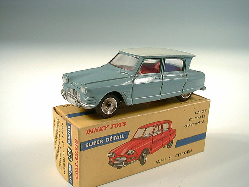 DINKY TOYS (FRANCE) 557 CITROËN AMI 6 (version avec roue de secours sous le capot) bleu ciel, toit blanc