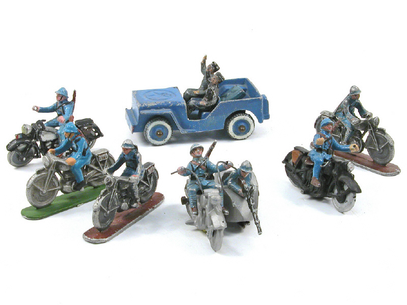 QUIRALU (FRANCE) Ensemble de 9 figurines, une jeep, un side-car & 2 motos