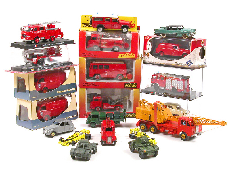 états de 'A' à 'R' - on y retrouve les marques : DINKY TOYS, SOLIDO, EDITIONS ATLAS, NOREV & DEL PRADO - 9 modèles sans boîte - on y joint 14 F1, 2 figurines & 5 accessoires de marque indéterminée