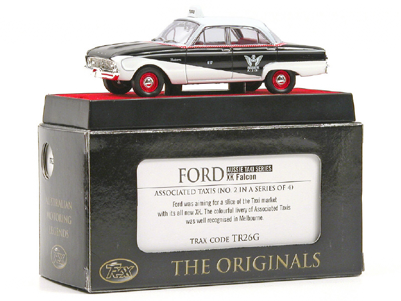 TRAX (AUSTRALIE) TR26G FORD XK FALCON Taxi de Melbourne 'ASSOCIATED TAXIS' noir & blanc